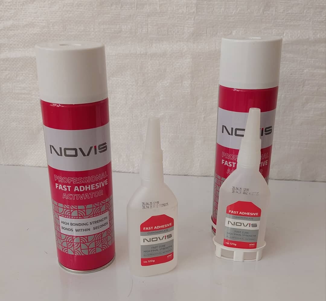 چسب Novis 123 از یک مجموعه چسب شامل چسب قطرهای سیانواکریلات با ویسکوزیته بالا و اسپری فعال کننده تشکیل شده است که منجر به یک اتصال سریع می شود.