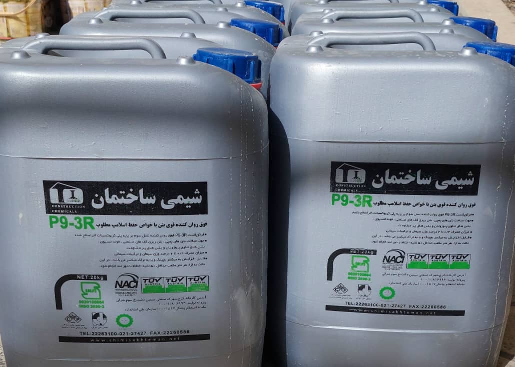 - P9N قابلیت کاهش آب اختلاط بتن را تا 30% با اسلامپ ثابت دارد که همین امر عامل افزایش مقاومت فشاری در سنین اولیه و نهایی و همچنین دوام بتن میشود.